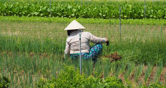 Tending the garden in the hot sun