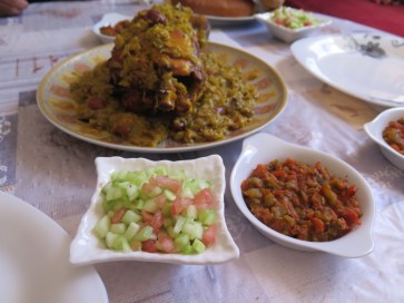 Chicken tangine and Moroccan salads